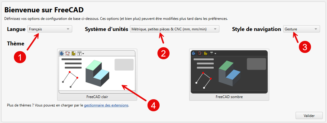 Démarrer FreeCAD ;