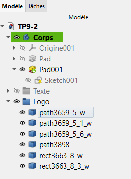 ImportLogoFreeCAD.svgcommeSVG as geometry (importSVG):FreeCAD ajouté 6 objets