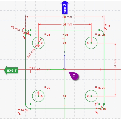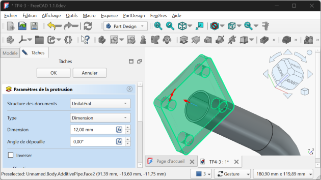 Sélectionner la face située à l'origine pour créer l'esquisse ;