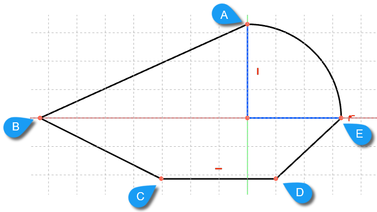 joignant les points A, B, C, D, E, en observant attentivement le pointeur de la souris lors de la création de la polyligne : la contrainte de coïncidence