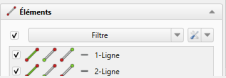 Liste des géométries de l'esquisse : le menu contextuel (clic droit) permet notamment de supprimer une géométrie ;