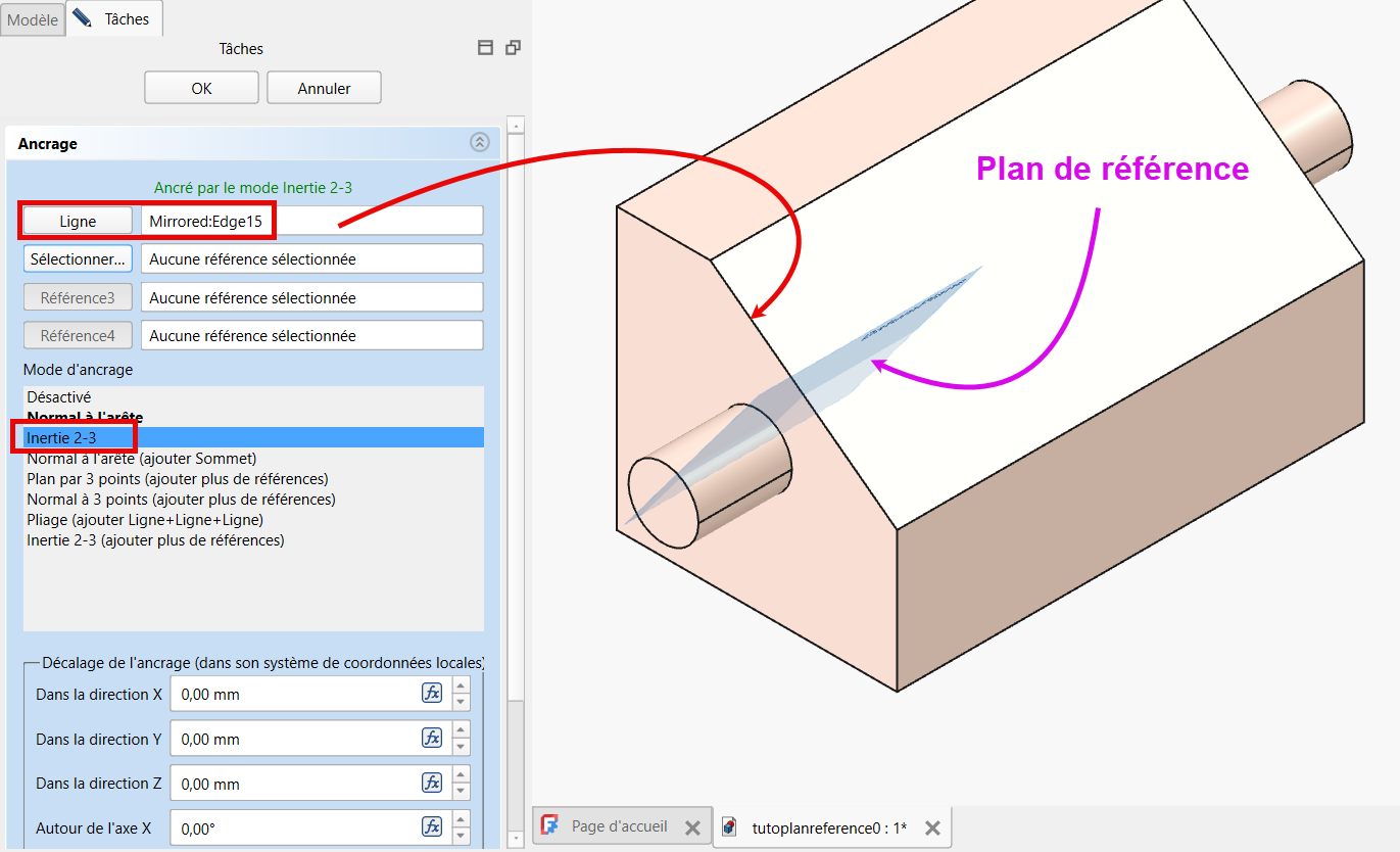 - soit créer un nouveau plan de référence à partir de la commande Plan de référence