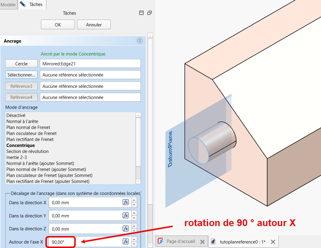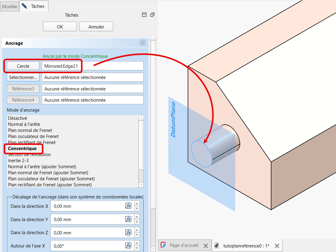 puis ancrer l’esquisse à ce plan de référence ;
