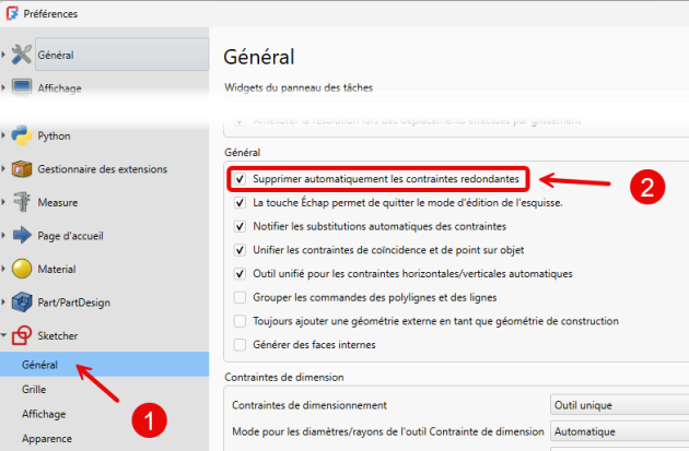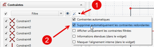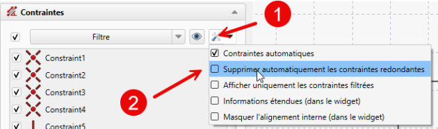 du panneau Contrainteset décocher la caseSupprimer automatiquement les contraintes redondantes;