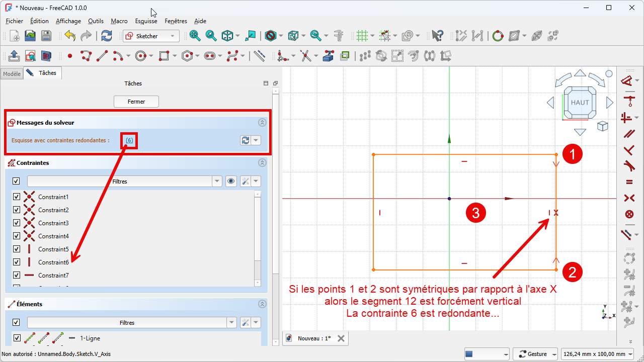 Suppression automatique des contraintes redondantes désactivée Cliquer sur la contrainte symétrie