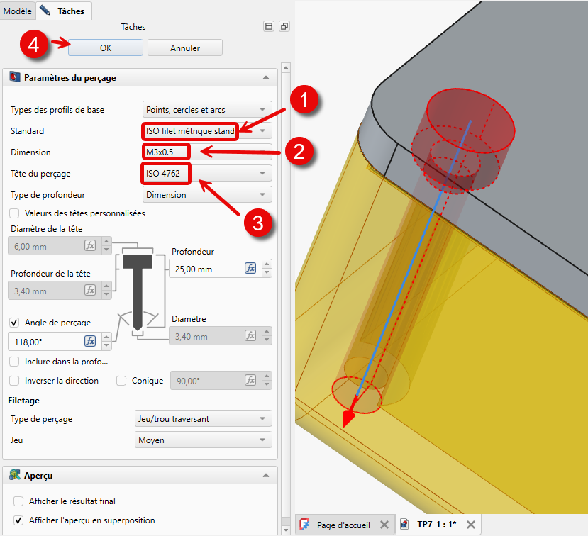 Peu importe le diamètre des cercles dans l'esquisse, c'est la fonction Perçage