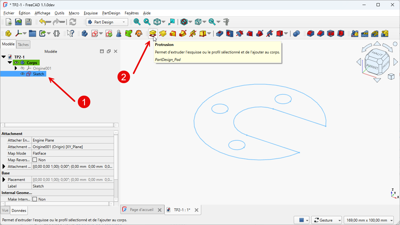 TP2-1dans FreeCAD ;Créer un nouveau corps