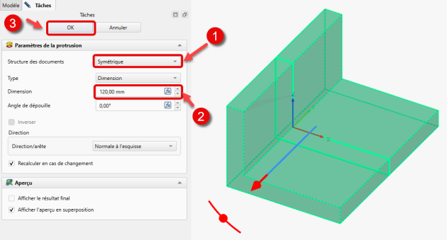D'une manière générale, il faut utiliser le plus souvent possible les symétries des modèles : dans le cas présent, cela permettra de placer les trous et le trou oblong par rapport à ces axes de symétrie.