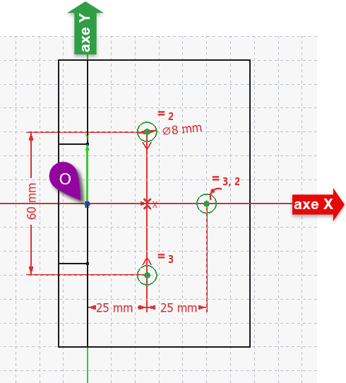 Dernière étape : nous allons ajouter les trois trous sur la face horizontale :