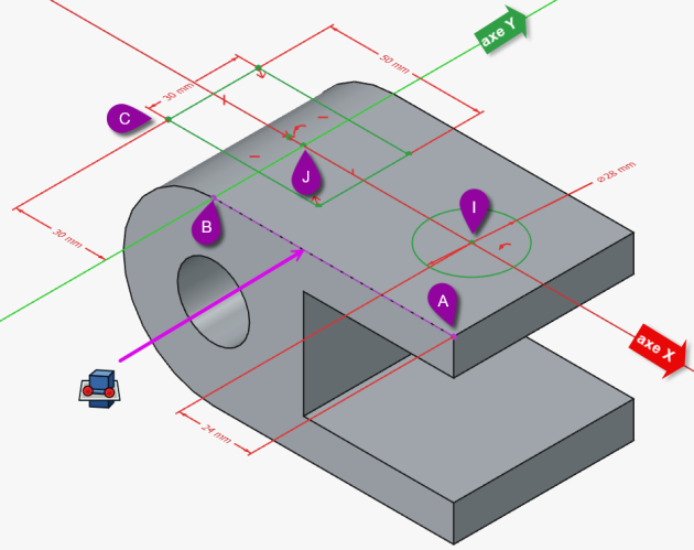 Pour positionner le cercle sur l'axe X, sélectionner les points I et A ;