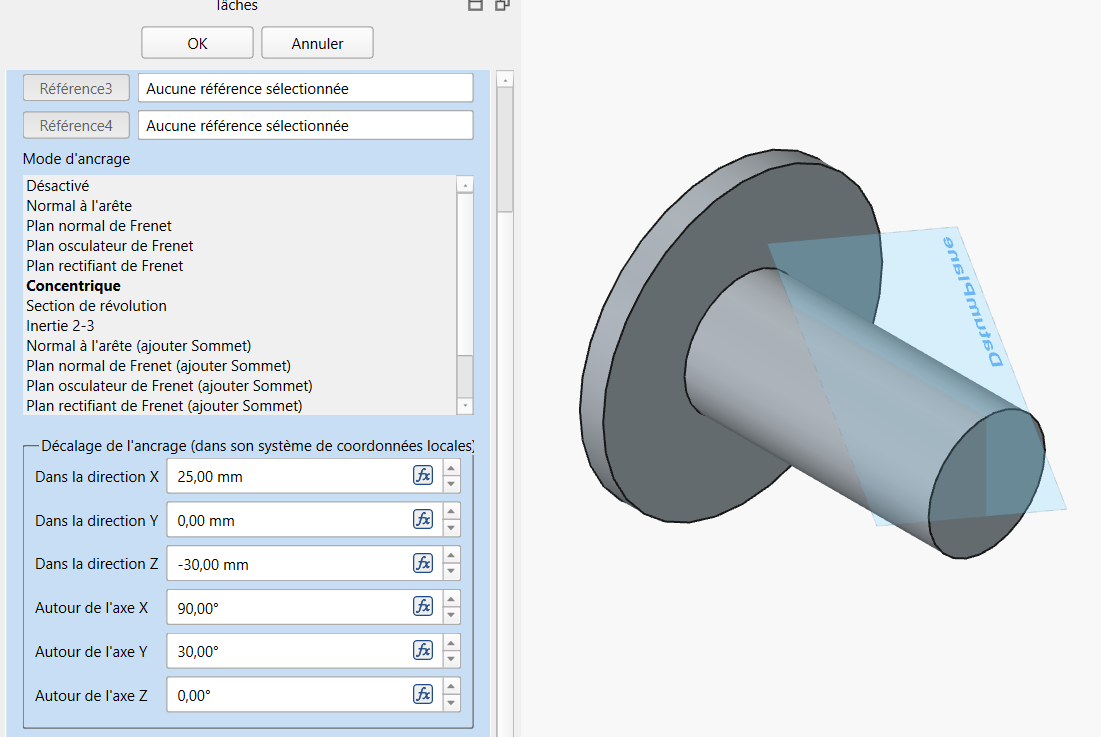 Explication du décalage et de la rotation du plan de référence