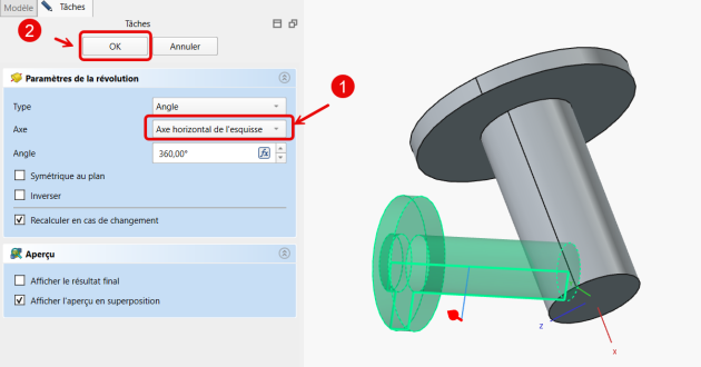 DatumPlaneaprès avoir créé l’esquisse dans l’ongletModèle;Activer la transparence du 1er cylindre à l’aide du raccourci clavier
