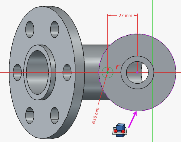 le plus procheà partir de cette esquisse ;Sélectionner le cercle externe de la petite platine et créer un ligne de référence