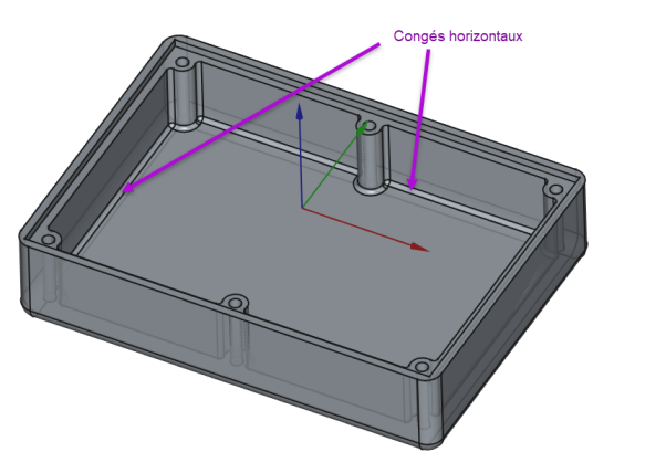 de 1 mm à l'intersection des cylindres et des faces intérieures verticales de la boîte ;